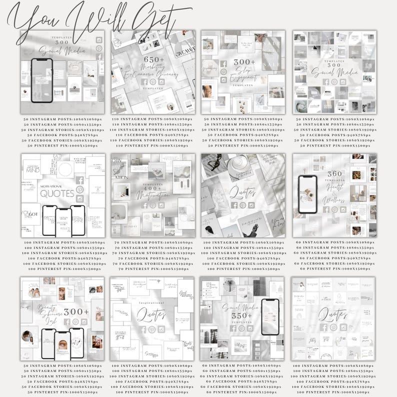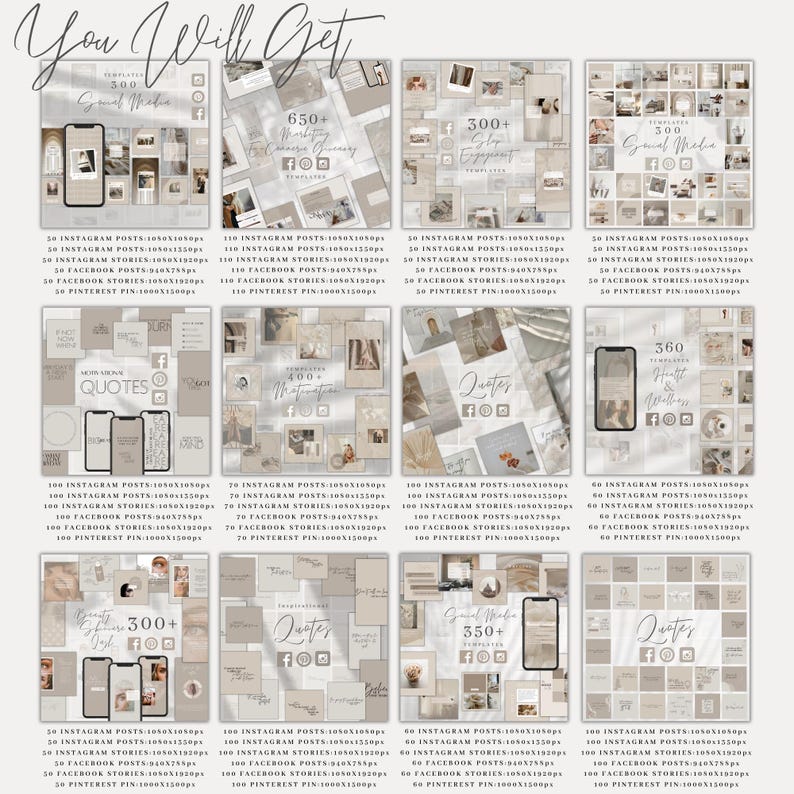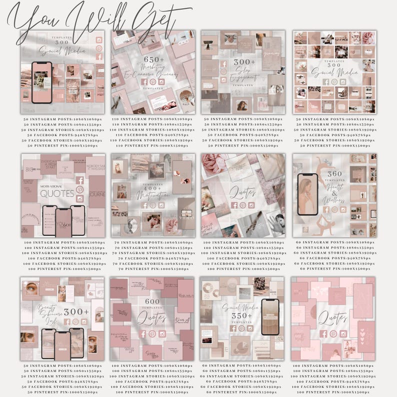 This all-in-one bundle includes beautifully designed, fully customizable Instagram post and story templates made to increase engagement and help your social media stand out with ease.